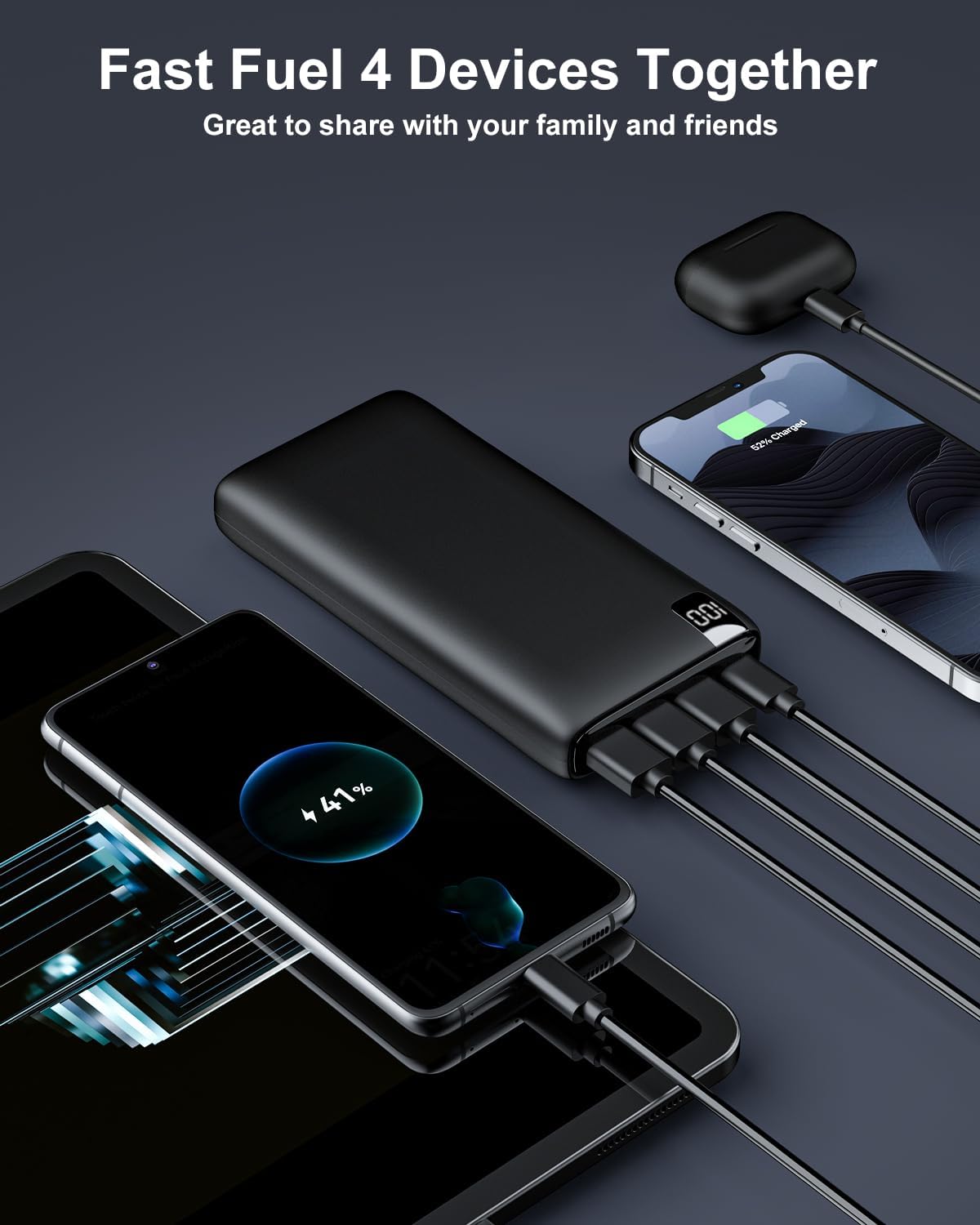 With four USB outputs, you can charge multiple devices simultaneously, making it ideal for travel, outdoor activities, or everyday use. The sleek and portable design of the IXNINE Power Bank makes it easy to carry with you wherever you go, ensuring you never run out of battery power when you need it most.